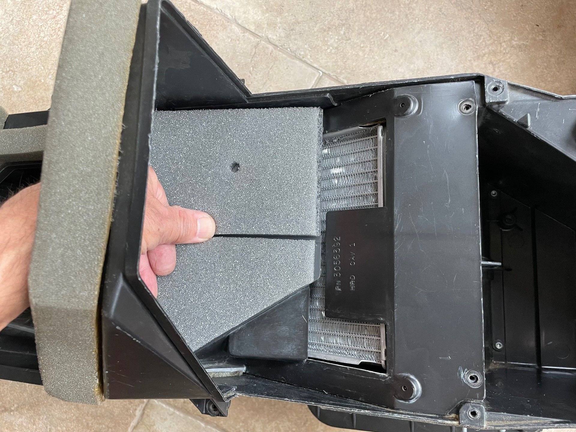 I see indentations in your foam showing that it looks like it's been installed but it looks new. If so, did it come from Blend Door USA? All I see is 5/16" thick. I am having a hell of time finding polyether foam they use, at least in small quantities. I bought some regular polyurethane white cushion foam in town but I can't be sure how it will hold up.