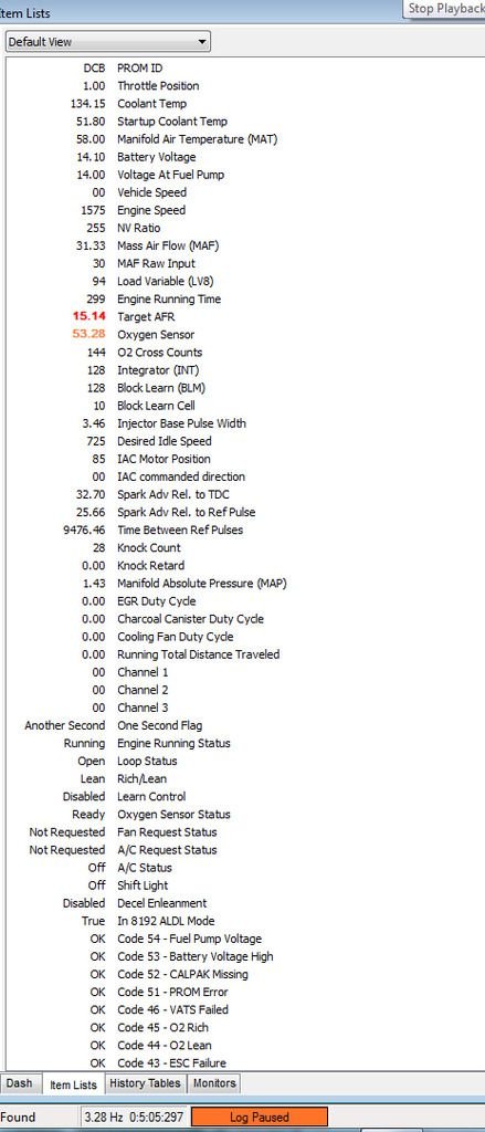 I have problems with my 89 350TPI Firebird. Runs not too smooth at idle and at around 1500rpm it backfires badly out of the exhaust and splutters. Have checked most things and timing is okay so have done my first datalog.