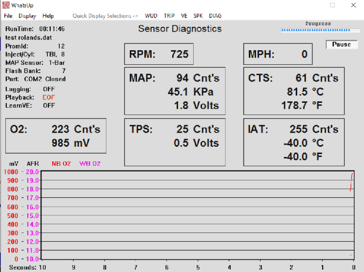 I have a data log file of the idle, but the file would not upload .