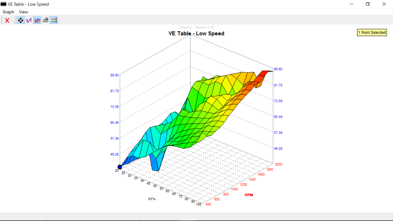 ... I mentioned earlier that the datalog will have the final say, and it did. Your BLM's were reporting 108 at idle, which were pegged rich. So now we'll start trimming the fuel down to where it needs to be. I only pulled about 4% of fuel from the VE Table, then smoothed it out, but you will see the difference in the values on the chart being used, see below;