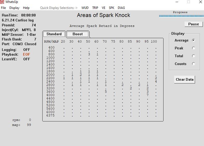 Wasn't able to tweak the tune yet, plan on doing it this weekend. Here is my spark knock count from my 2.5 hour trip to Carlisle PA. If I rev my engine in park I get a lot more knock counts leading me to believe that they are false counts. Maybe my KS is overtightened? Maybe I have an incorrect KS or maybe because its so close to the headers?