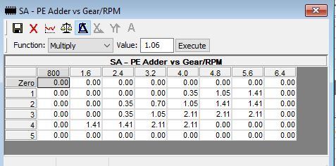 SA-PE Reduction vs MPH is zero'd for all cells. I'm showing the other tables below. The SA Coolant Bias and SA IAT Bias constant are both set at the default of 9.84.