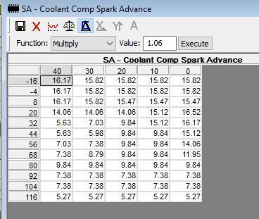 As for tables that can subtract from the SA, there are several. The main ones are the "SA - Coolant Comp Spark Advance" and "SA - IAT/CTS Compensation" tables.