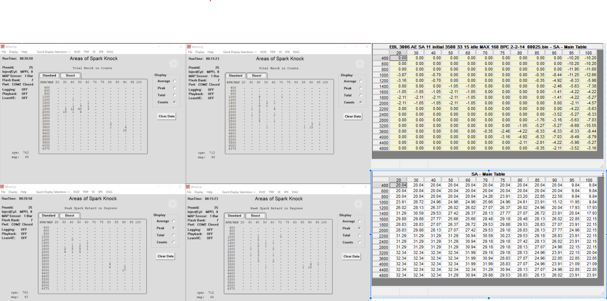 For the image of the results, there are three WUD knock readouts for tunes 22, 23 and 24. The top middle image is the difference in timing between tune 22 and tune 24.