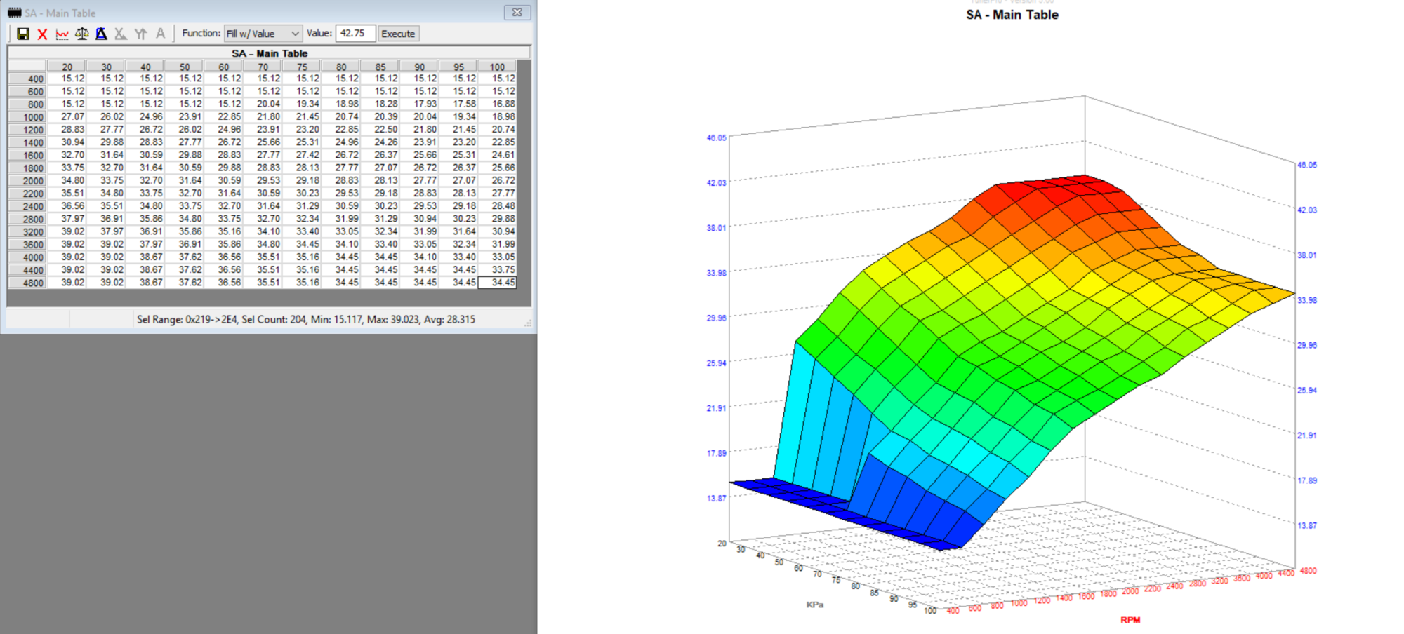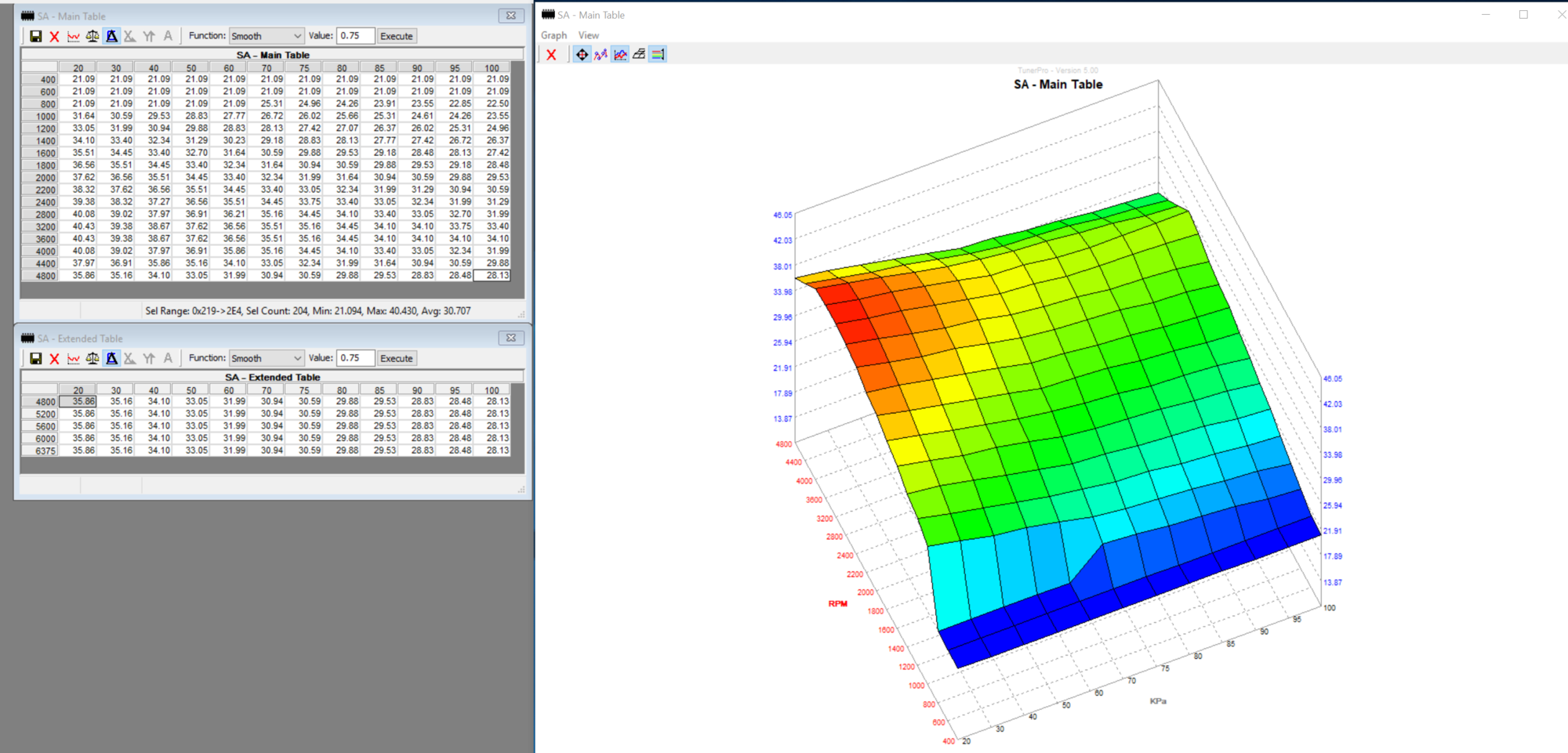 Looking at the data some of it seemed to be fueling related rather then SA related. However the higher end seemed SA related. I took a few degrees out and ended up with curve
