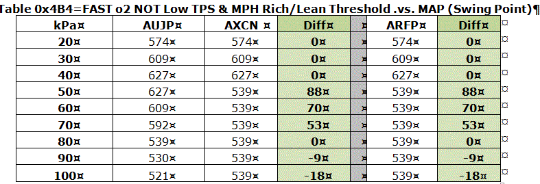 One thing I don't understand is that on $8D (i.e, AUJP, ANHT, etc) is why for this table, the values get lower with higher map values. I would have expected that the O2 swing points trend richer with higher map values??
