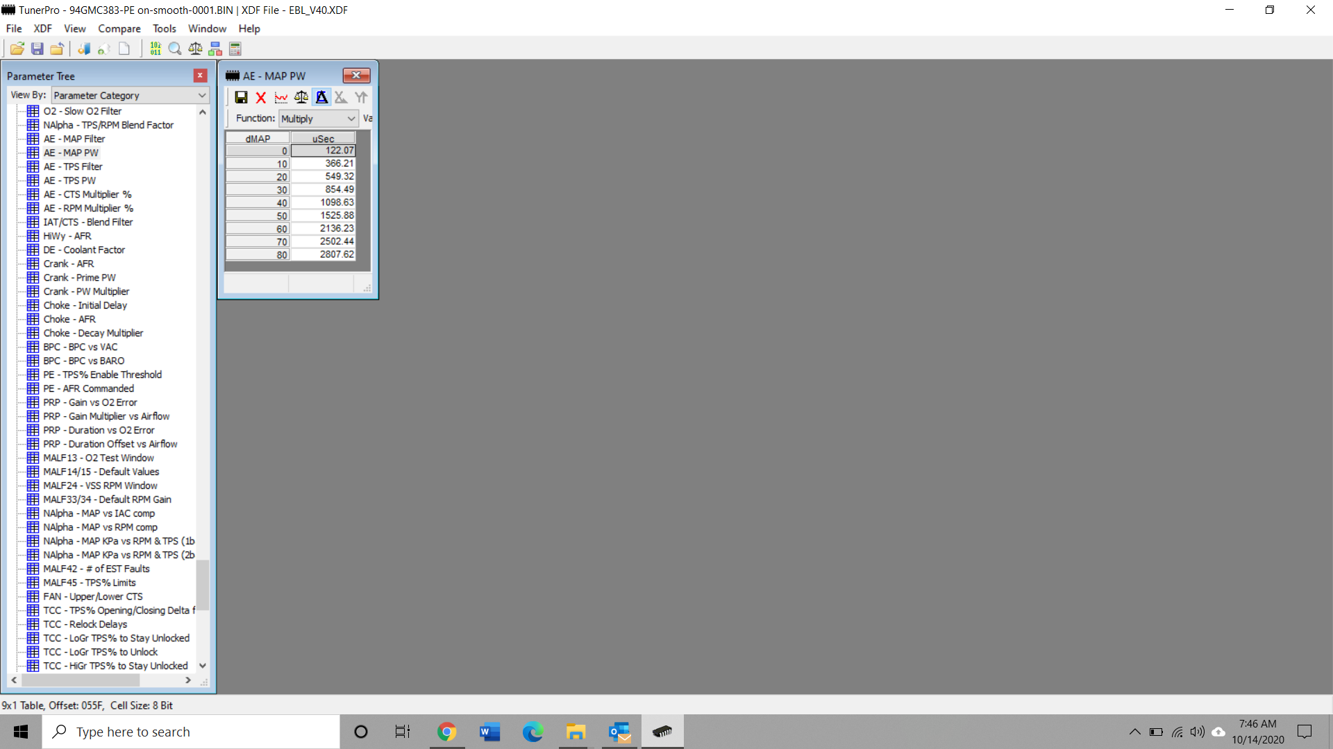 * Upload your most current bin into Tuner Pro (I'm using TB4 as an example), and open up the two Acceleration Enrichment tables that we are going to change; AE - TPS PW & AE - MAP PW...