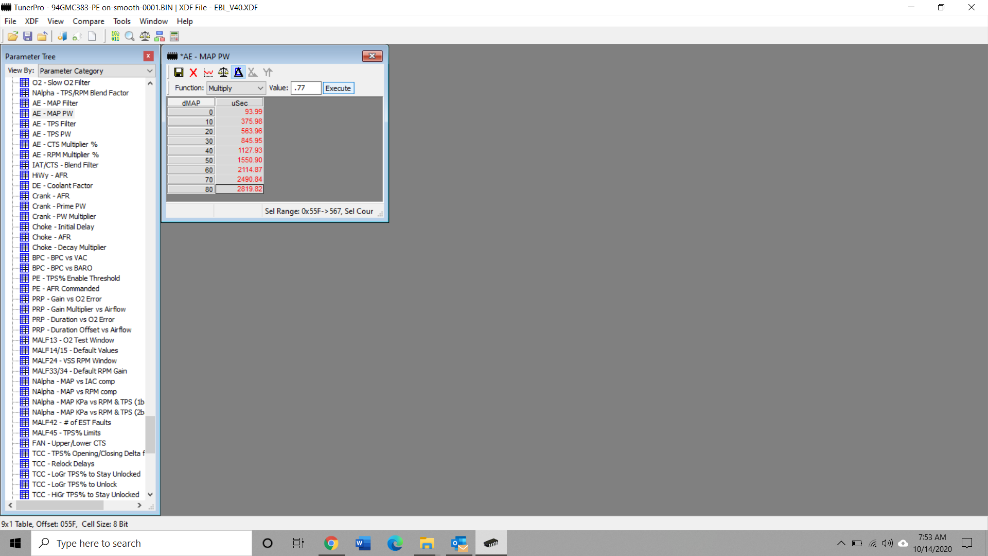 I'm trying to multiply the Map PW by .77 like you said but it won't save to the BIN. I have no idea why but I'm pretty sure it's because I don't know what I'm doing! LOL