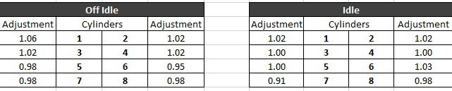 So ULT, what exactly are u adjusting w these trims? Is this a factor applied to PW? Even something along these lines applied to the primary injectors. Don’t need to be concerned w the secondaries as their PW is dictated by the primary injector PW they are paired w. IOW the ECM calcs the correct PW, then multiplies it by .51, w both injectors firing concurrently. If I could get a table like this even if only for bank to bank.