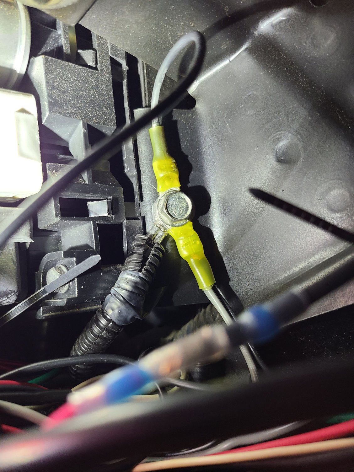 You say the ground also needs to be excellent, it's one of the three twisted, crimped, and shrink wrapped wires in this connector. Bolted to one of the factory under dash grounding locations on the driver's side. Good enough?