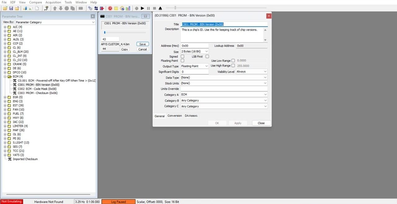 Parameters to set a PROM ID (BIN Version. 43 is Version 4.3, 44 is version 4.4 and let's say 310 would be version 3.10