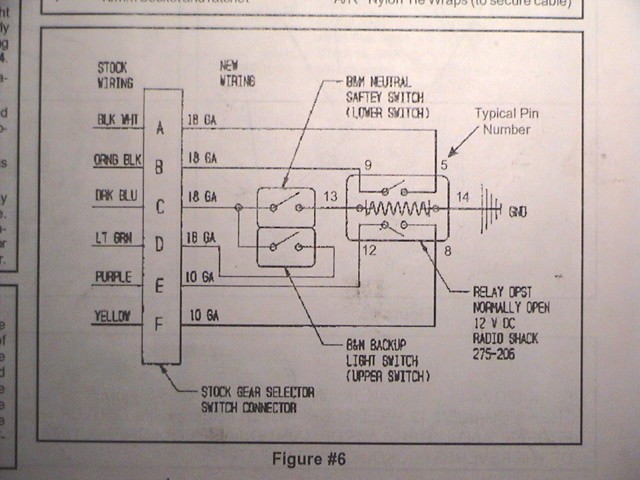 I take it that you are talking about the dark green/white wire that went to the park/neutral switch(pin "F") from the starter enable relay and the purple wire that goes to the starter solenoid. I'm not that familiar with the B&M wiring for their relay. If you can, how about scanning it and e-mailing it to me so I can look at it.