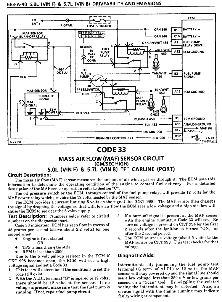 I originally posted this question in the tech/general engine forums, but after a few replies, it makes me think my problem(s) may be electrical. My symptoms are thus: If the MAF is plugged in, the engine wont stay running, it stalls out. If I unplugg the MAF, it idles fine, albiet a bit rough. Ive read through my haynes manual and the only thing I could see was a burn off relay and a 20a in line fuse, and the ECM fuse under the dash(which was the only one I could actually find, and its ok) Looking for some help as to isolate my problem further, and to see if I need to get a new MAF sensor or not, thanks!