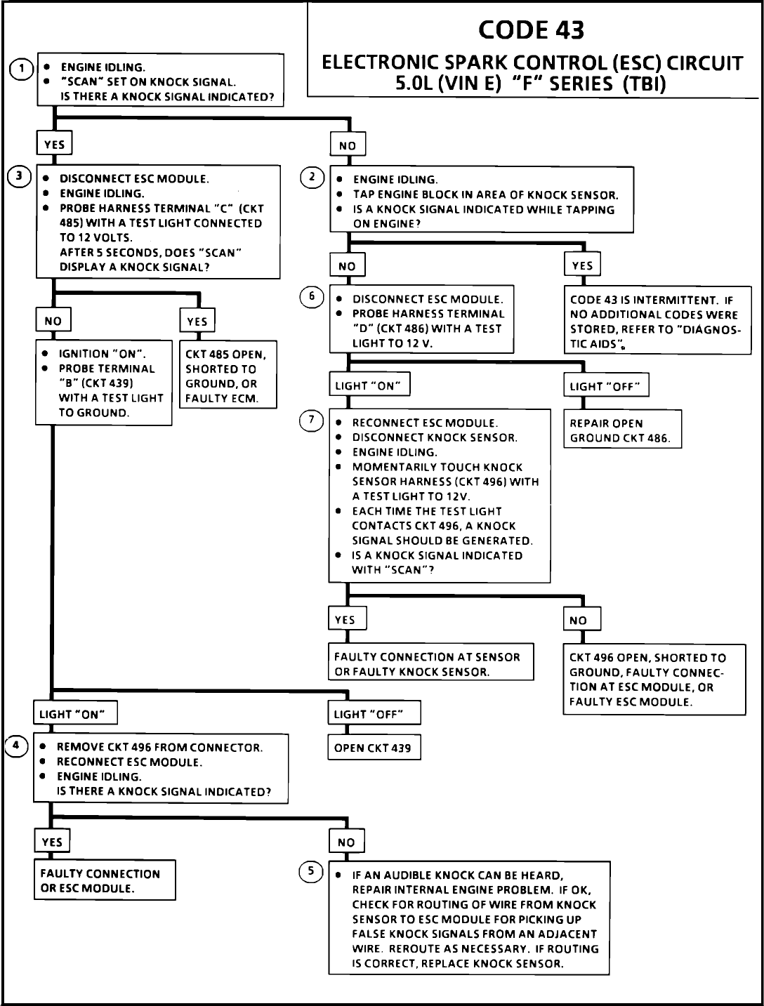 Code 43-Electronic Control Module has detected an electronic spark control input signal for too long a time period.