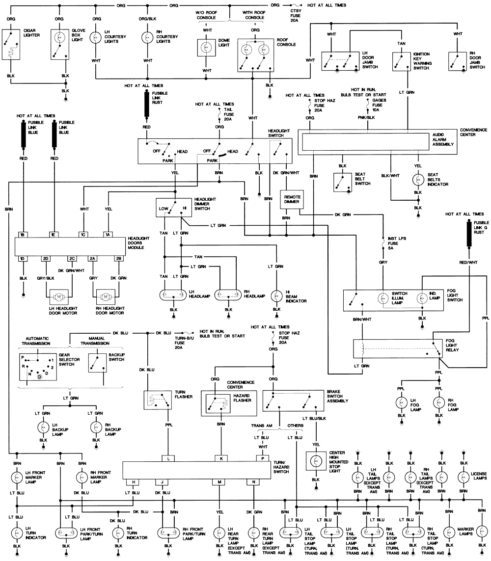 The brown wire is either a positive or ground for the headlights. The link below is the wiring schematic for my 88 Camaro.
