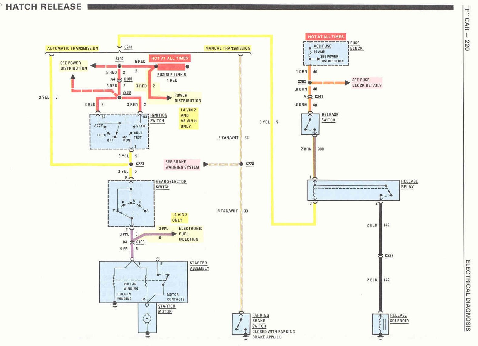 So I take it I would have to splice the yellow wire from the hatch release relay into the wire to the parking brake switch right?