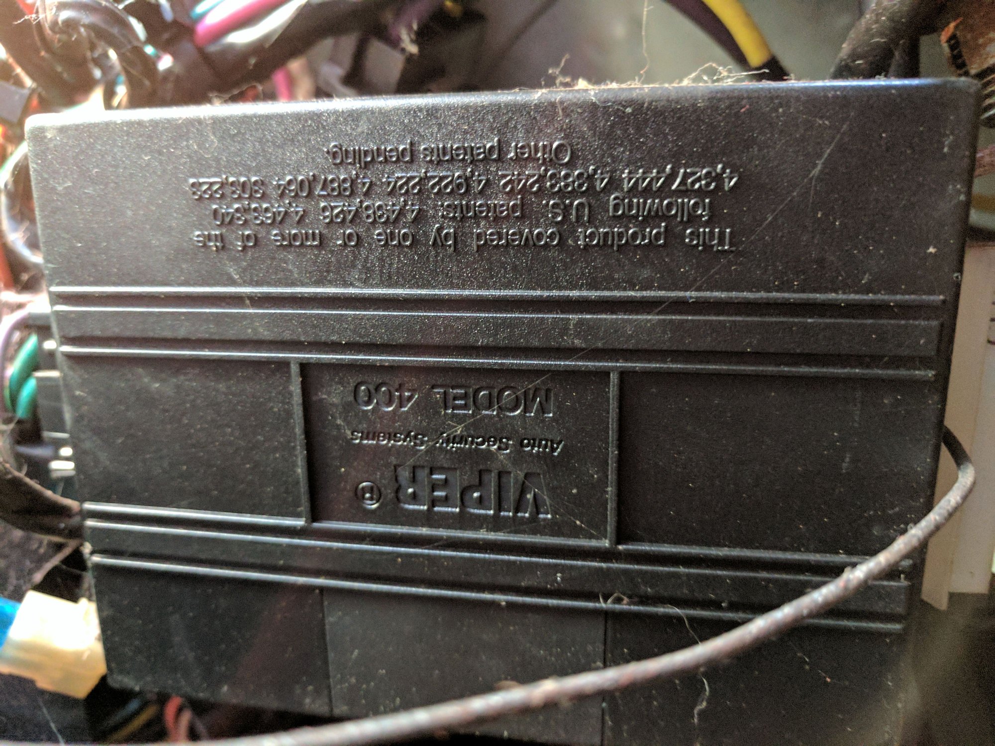 Im fairly new here so stick with me anyhow, I have an 87 Z28 , I got it with a car alarm installed in it , the alarm is a viper model 400 I cannot find any info on the alarm and I do not have the key fob for it . Currently I don't have it connected to the battery , however if I unplug the box pictures below the car will not start , the key just turns and the gauges like bounce, I want to remove it but don't know where to start any help would be awesome.