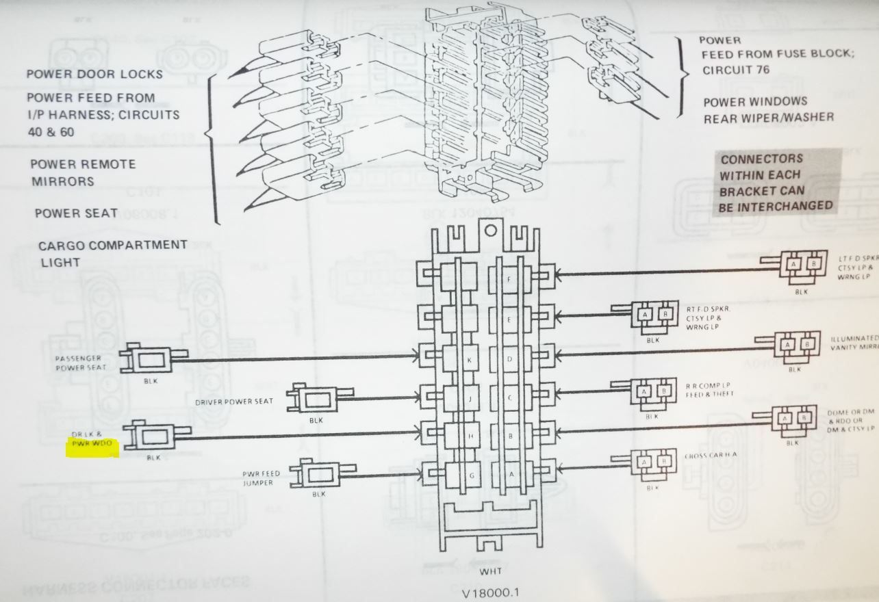 Yep, pwr windows were an option, but if you don't have any of the options in that first diagram, you might not have the distribution block. Look under the dash on the driver's side. Go up and towards the front a bit from the hood release.
