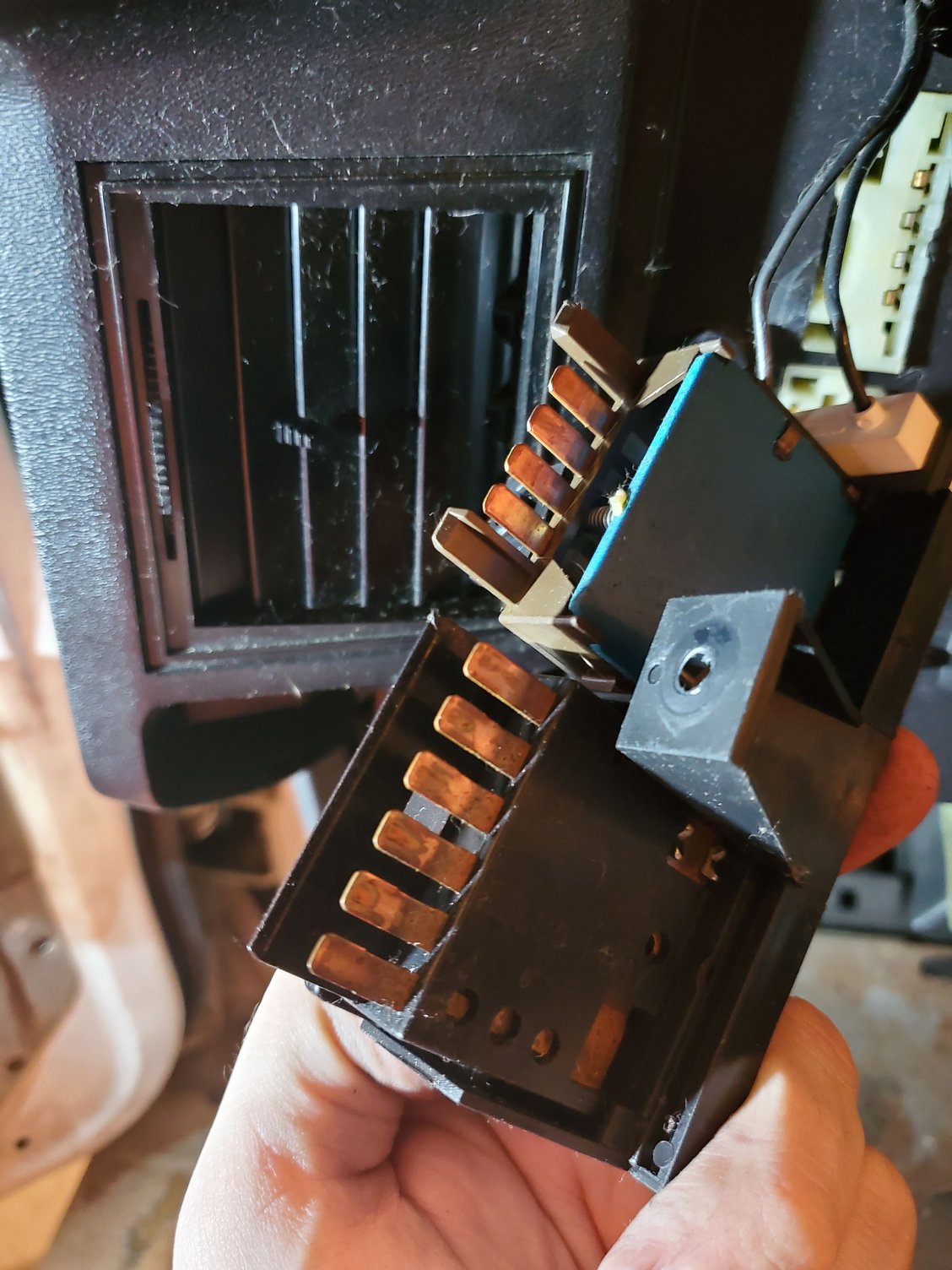 I was trying to see about headlight module? Thats the middle one on the driver side near the firewall? I have a multimeter but not very good with it. If someone could recommend where to test things with it id apreciate it. My problem seems to be the opposite of others. The headlight switch in pics is the old one. Not sure if it matters at all for this, but the interior dimmer light scroll works...
