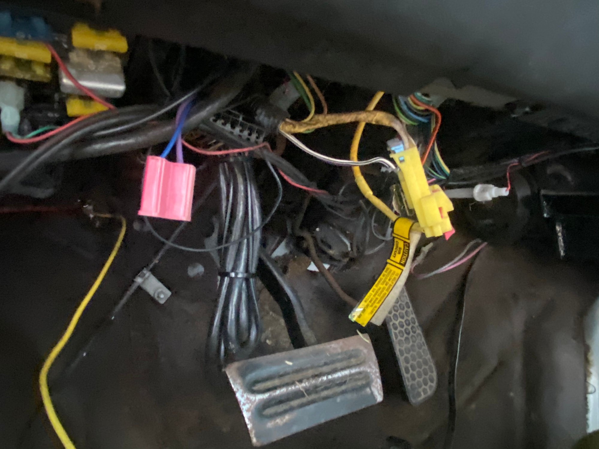 In my 1990 Bandit II Edition Firebird I have this wire that runs from a button under the dash into this purple wire in the wiring harness in the engine bay. The other side of the wire on the button isn’t connected currently and I have no idea what it’s for. What is the big purple wire for? And what might the button be for?