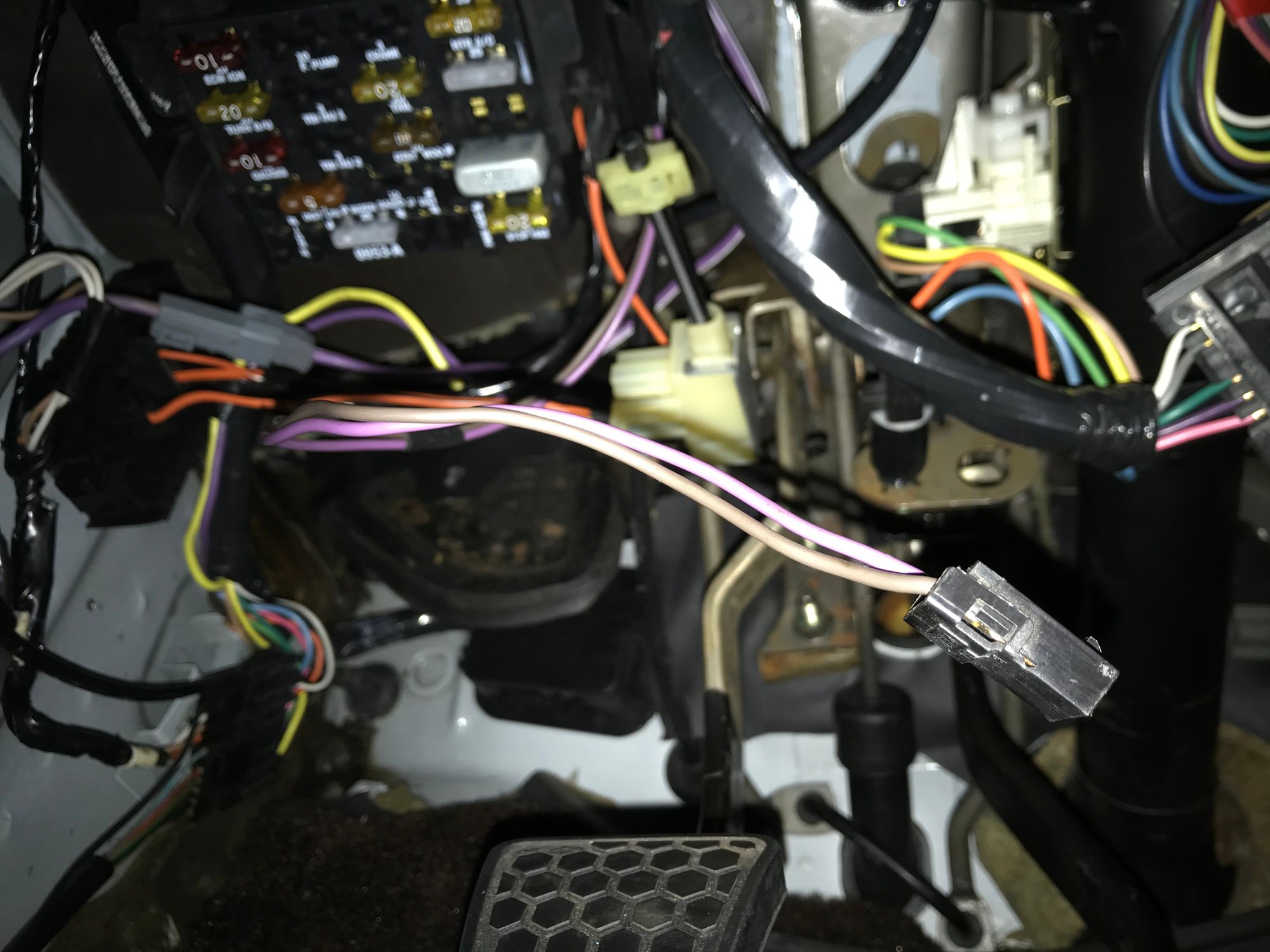 The other end of that should be hanging down from up under the cowl behind the fuse block. That particular connection doesn't have much slack (If I remember correctly).