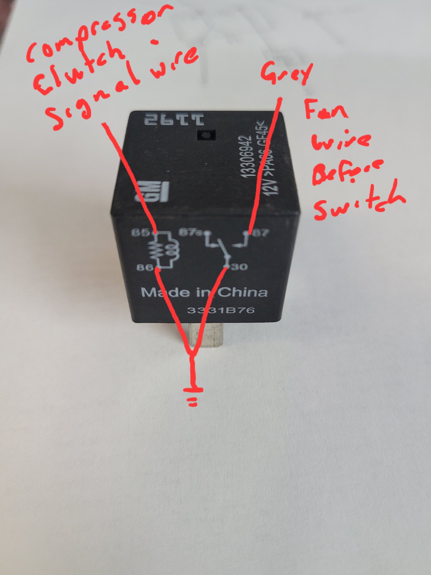 You would put it in after the splice at roughly this area. It would allow the other parts to function as they are supposed to, but this will only work if the switch that you currently have that is normally closed will open at 232 psi , If it is normally closed and never opens even at high pressure then this wont work.