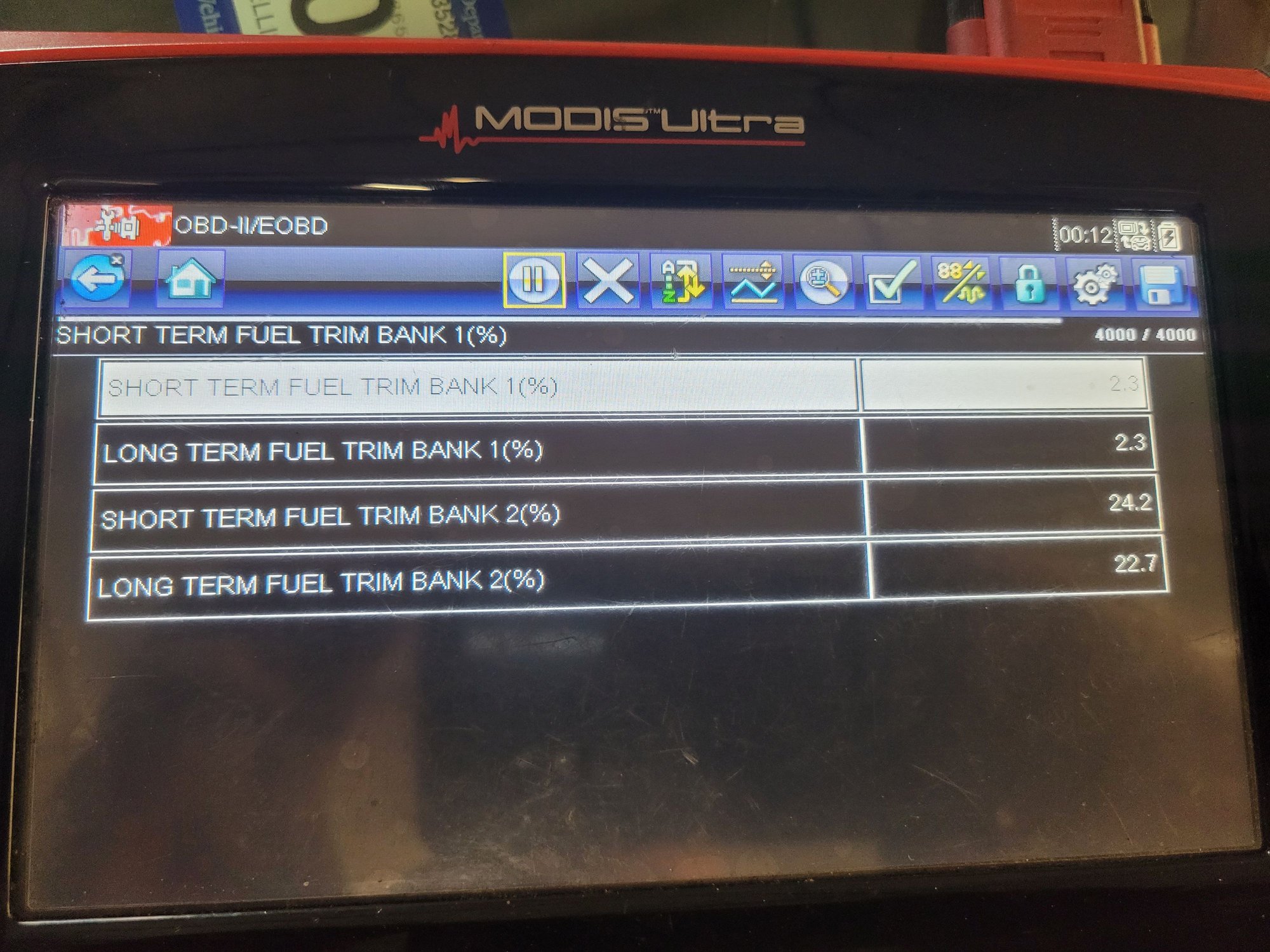 this is a good side by side example related to what your car is doing. Bank 1 is within its +/- 5 percent range of adjustment, where bank 2 is way beyond that range so it set a code for bank 2 system lean. This is looking at correction percentage, with it being a positive number the pcm is adding more fuel to that bank to try and correct the air fuel ratio just for that bank. The front o2 sensors read the amount of oxygen in exhaust and the pcm determines based off of that info does it need to add or take away fuel.
