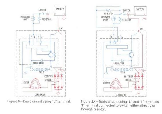 If you do have an alternator warning lamp connected to terminal “L”, you can still connect the the ignition switch to terminal “I” using an excitor wire with or without a resistor in series as a backup method of exciting the alternator. This is good practice as this type of redundancy enhances reliability.