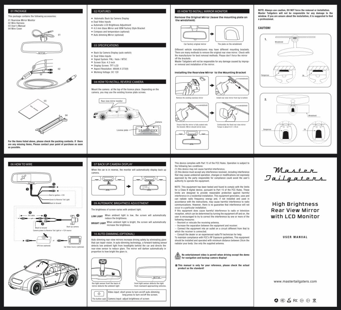 Who is the manufacture of the camera mirror, and do they supply any instructions or a wire schematic?