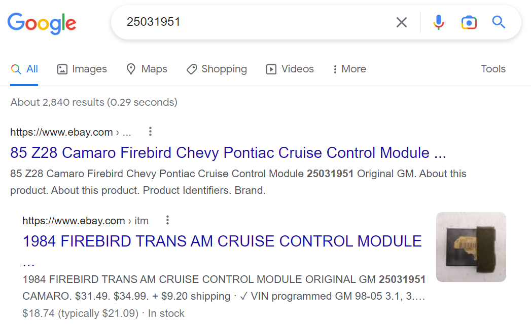 Car: 84 TA orig. 305 LG4 "H" E4ME