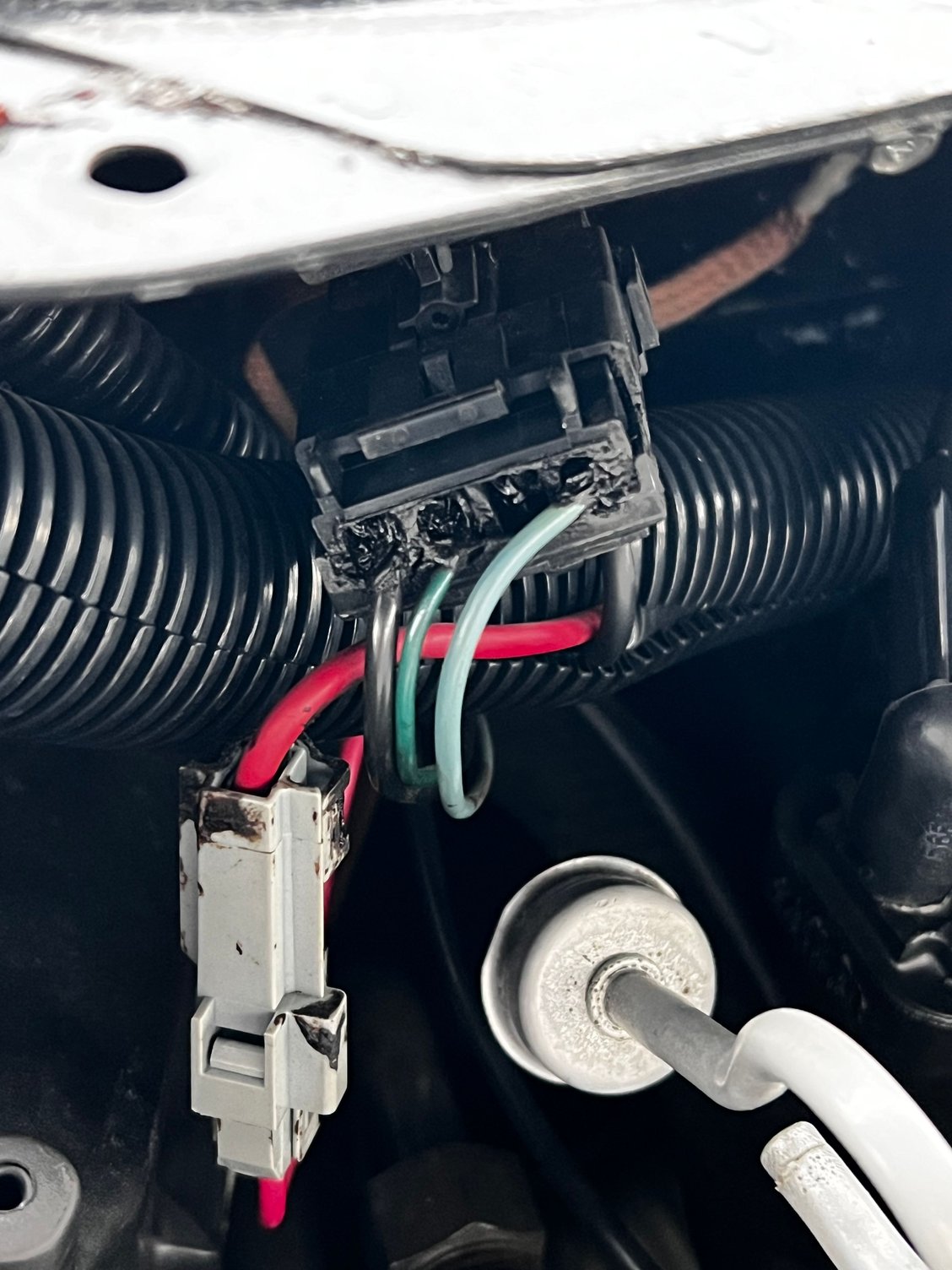 The red and black wires VERY often burn up. As stated, though with much more restraint than I would use myself, they are JUNK. I would argue, the WORST connector design EVAH. However yours look surprisingly good, actually; the wires themselves aren't even brown yet, let alone black like they often are. The ones that burn up are the red one and the black one. The ugly stuff is, as mentioned, just potting compound.