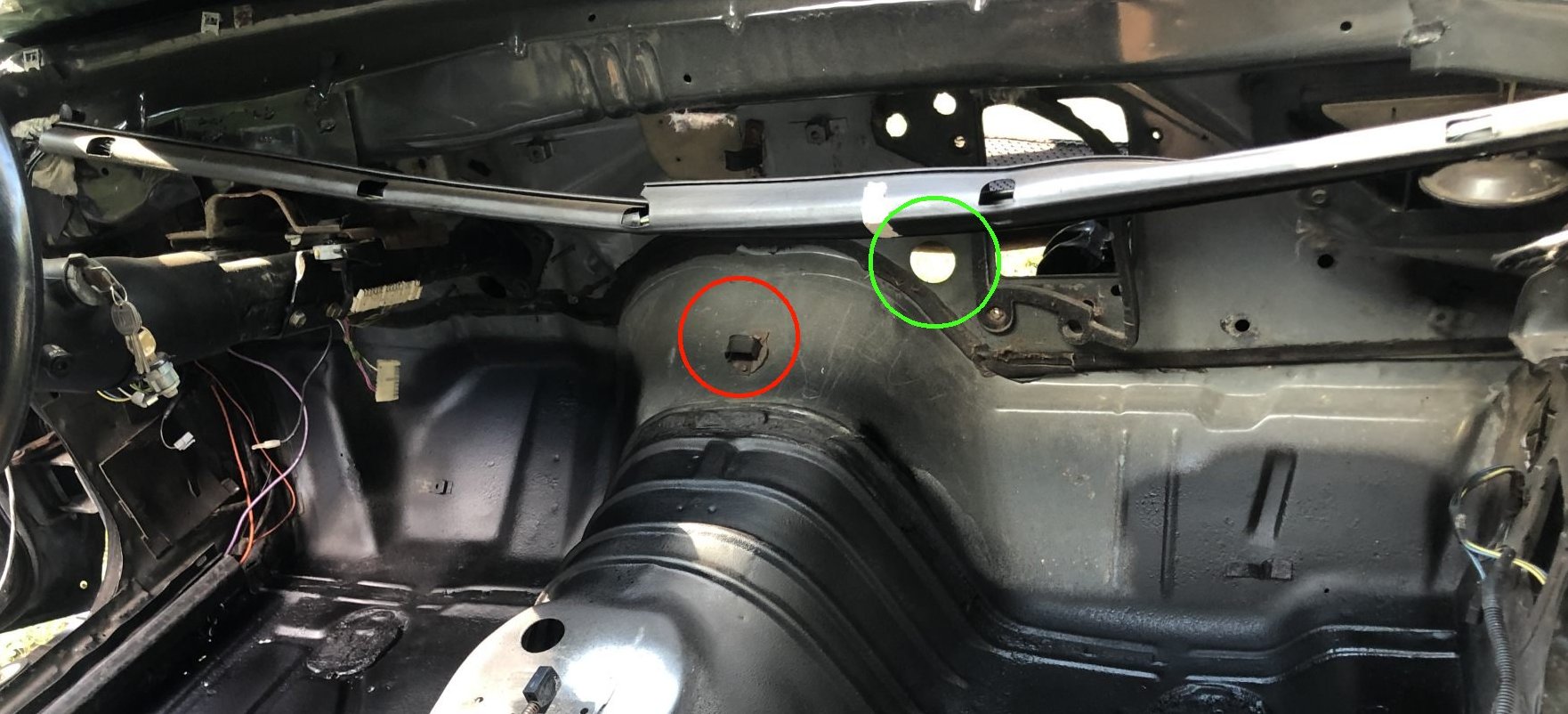 This picture shows my GTA's interior when stripped when I converted it to a T5,.... the GREEN circle shows where the HVAC harness enters the cockpit from the engine bay. Notice the RED circle,... the HVAC harness is run under this "clip" that's spot welded to the body so you can't really just pull it out from under the console. ( sometimes you can get lucky and the "clip" will break off when you pull the harness - but that has only happened for me once ! ) You'll have to remove the center console, remove the HVAC duct inside the console, & then you should be able to remove the harness.