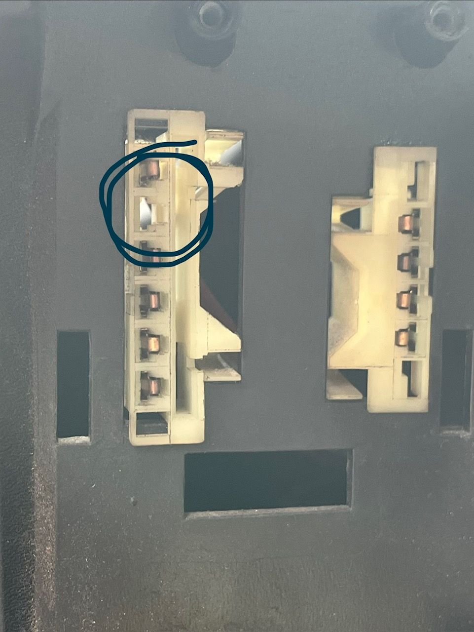 I've got a new to me 1983 Recaro Trans Am and I am trying to figure out why I don't have my front driver side marker lights working. When I pulled the switch assembly it looks like I am missing a connection in the wiring harness. Should I have a connector in that second from the top spot? I've checked my service manual but I didn't find the answer I was looking for.