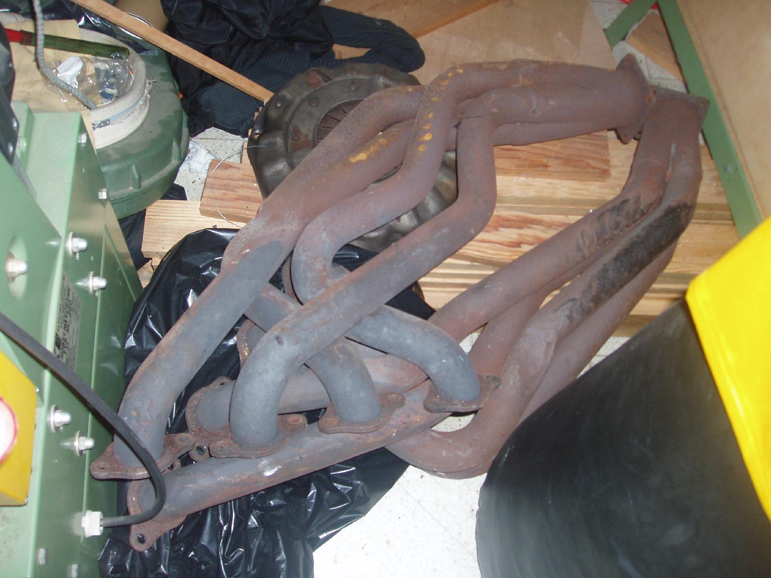 thanks for the reply ! I've filled out a tech assistance form on the hooker website, so I'll have to see what they say about a complete exhaust setup. Will off course keep everyone here up to speed. I dont really believe they offer complete exhausts, so for the moment I'll assume one will need to be fabd. Yes greezemonkey, youre right, shipping would be hell , and in fact I do know a competent welder here. If there are any pointers you can give about making this dual exhaust, please let me know, I will tell him. cheapest place I found the hookers is jegs , at $429. Actually, when I bought the 454 the guy threw in some headers , he said "99.99% chance they wont fit, because they're from a truck" but I'm keeping them near , hoping to install the BB within a month's time and hey , who knows , maybe these will fit ... you never know :-))) Here's a pic of those headers , and of my beloved 454 and T56 blocking the entire garage. :-) Cant wait !