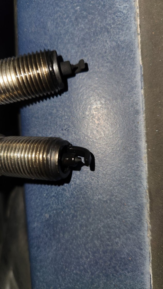 So I do a few more turns of starting then pull the plugs Wet plug in cylinder 6. Both look pretty black but thats direct injection. Cylinder 6 is wet and 4 was dry.