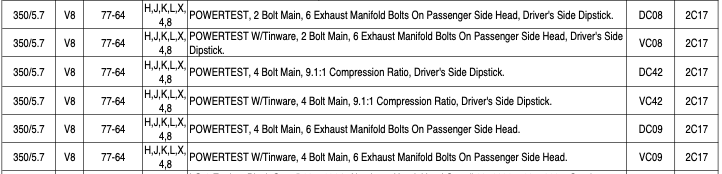 It's crank, rods, & pistons, plus rings & bearings, that turn a .030" over 350 block into a 383. 350 stroke is 3.48"; increase it to 3.75", and bore the block out .030" (which has almost certainly already been done to that old truck turd, if not .060", in which case the block is now GARBAGE), it becomes a 383. Back in the day, we all used to do that with a stock 400 crank with the mains turned down to the 350 diameter, stock 400 rods, and stock 350 (or the appropriate overbore) pistons. Butt nowadays they make cranks with all the right dimensions to begin with, and purpose-built pistons that allow longer rods, which overcomes one of the weeeeeeeknesses of the stock 400, namely its shorter rods. And if you're tearing down a 350, and most especially if it turns out that it was built with crap rebuilder dished pistons like a truck mule most likely would have been, might as well increase the CID, and consequently the torque, by 10%, while you're at it.