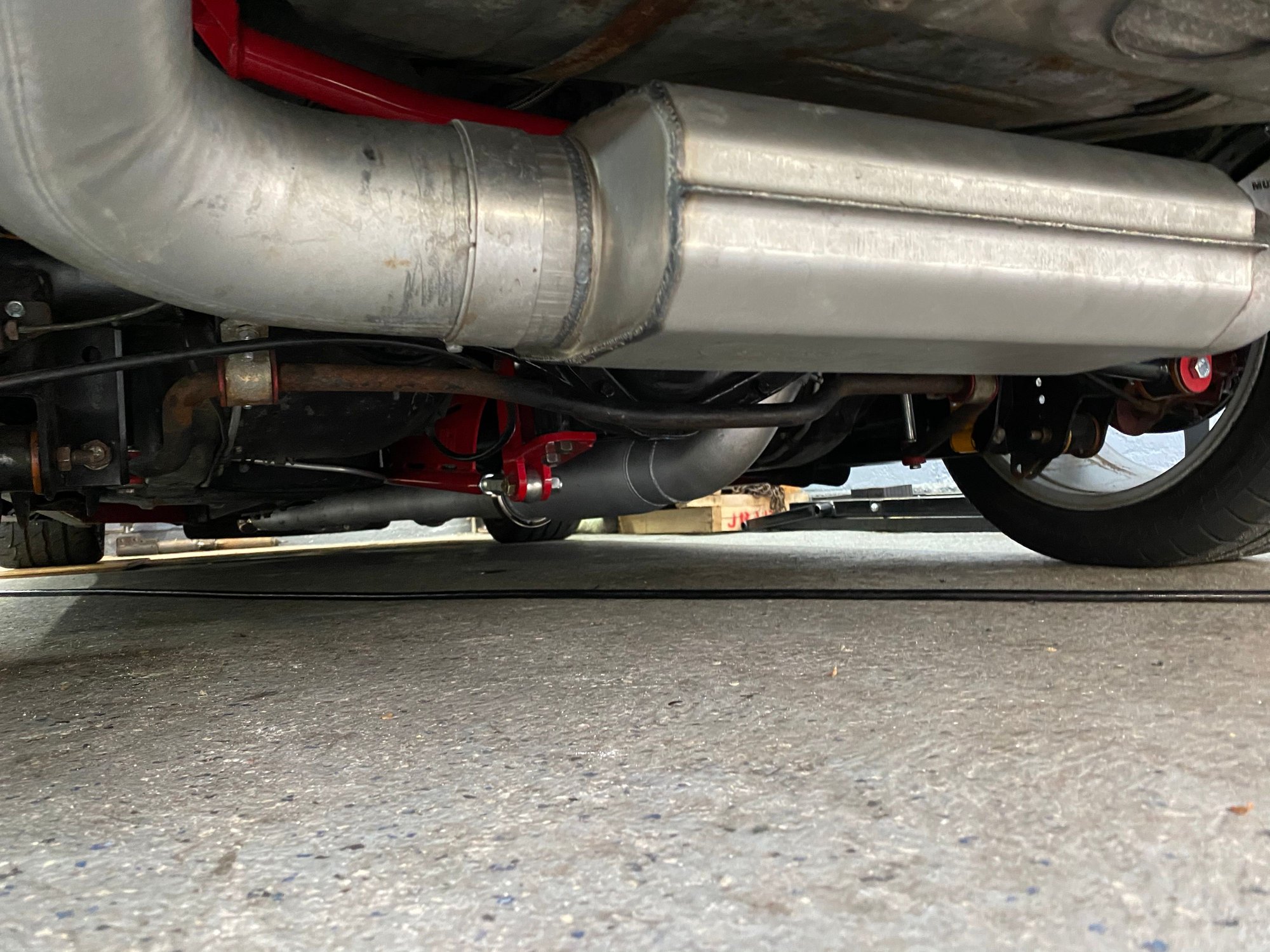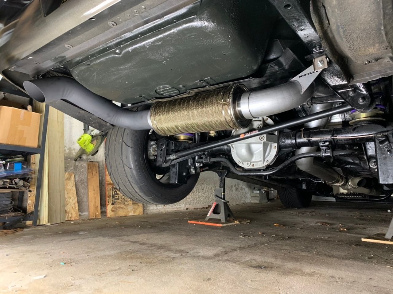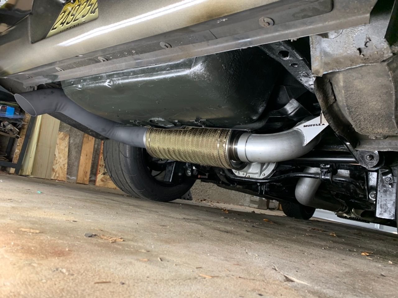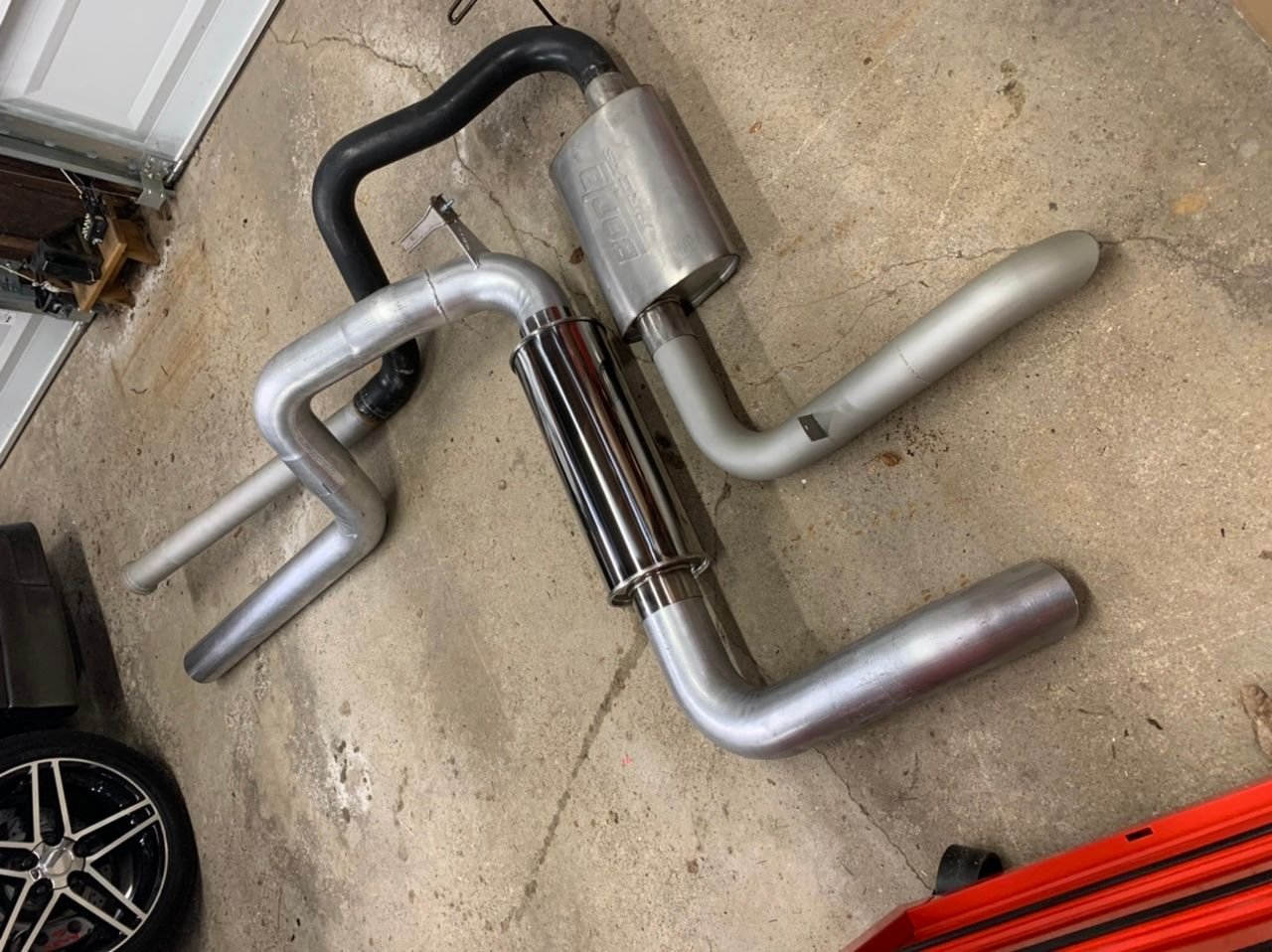 I just installed mine a few weeks ago. I’m using the Magnaflow supplied with the Mufflex kit, but I managed to tuck the system enough to run a 6 inch OD dynomax bullet muffler to take the bite out of it a little. I have a stage 4 cam, so a 4 inch system was a pretty bad idea on a daily-ish street car. I might experiment with a diesel muffler in place of the Magnaflow eventually. Hell if I ever managed to make it TOO quiet, I can always add a cutout. Also before the Magnaflow I had a Hooker quiet flow as you can see below. Quietflow my ***, the magnaflow ended up being quieter so I swapped it out.