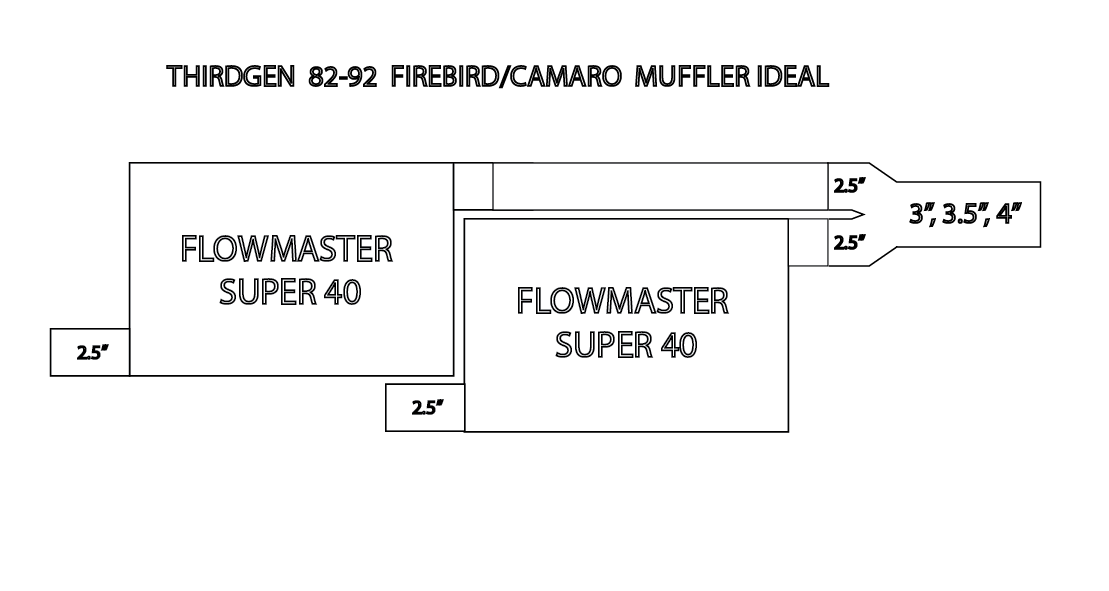 That said, that is exactly the packaging that was used on some mid 90's chevy trucks under the bed behind the cab, and they did sound OK (not good by most people's standards but better than stock...) with some flowmaster muffler models spliced into the stock pipes, specifically the deltflow ones, but besides the fact that I have no idea where you're going to do that with a pair of 19" or so muffler cases on an f-body, the bigger problem is that GM only did that on long bed trucks which had long tailpipes, and longer tailpipes quiet down some of the noise that is associated with Flowmaster mufflers, and second, the longer the pipe the lower it's harmonic frequency, tuning it for a deeper tone than you'll get on a f-body because of the lack of length. Now the reason that I specified the deltaflow mufflers is that Flowmaster designs have always had a problem with horrible cabin drone in the mid 2xxxrpm range, and the deltaflow mufflers fixed that somewhat. Back in the 2000's I worked at a speed shop and we avoided selling Flowmaster setups because too many people were unhappy with them and even tried to return them.