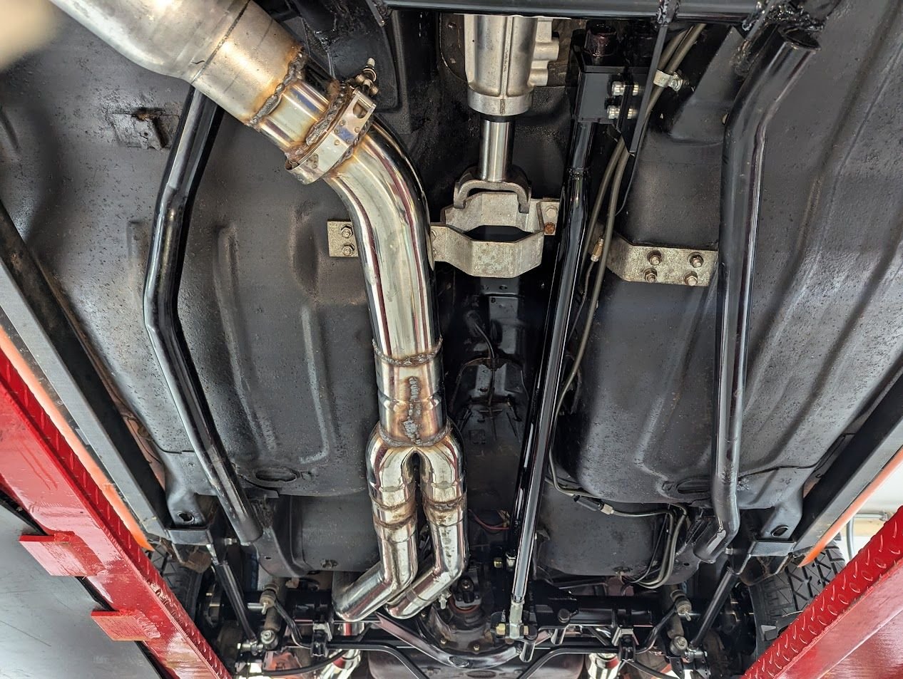 I'm trying to figure out how to fit a decent size case where the cat normally is and I'm thinking the two 14x10 ultra flows in the back. Gonna be a lot of cutting and welding though.