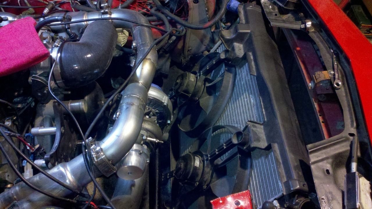 don't forget to build a shroud! insane could probably increase his cooling capacity 30 to 50% if he would move the fans back 1 1/2 inches and box the radiator core with a simple sheet metal shroud.