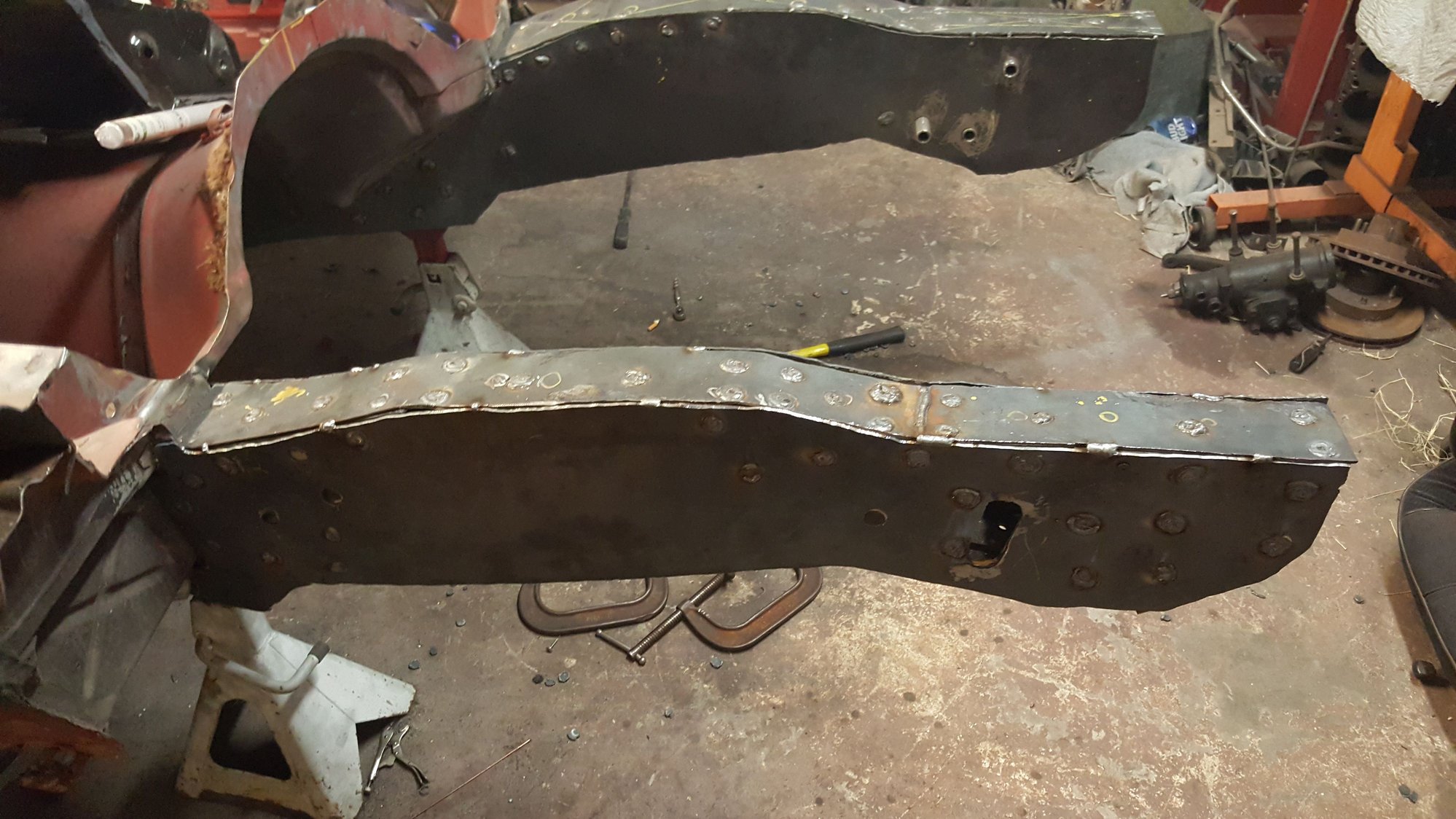 Passenger side still have to weld up seams and make a plate for the bottom of the rails also left provisions to run a gear box and idler arm set up if i want...