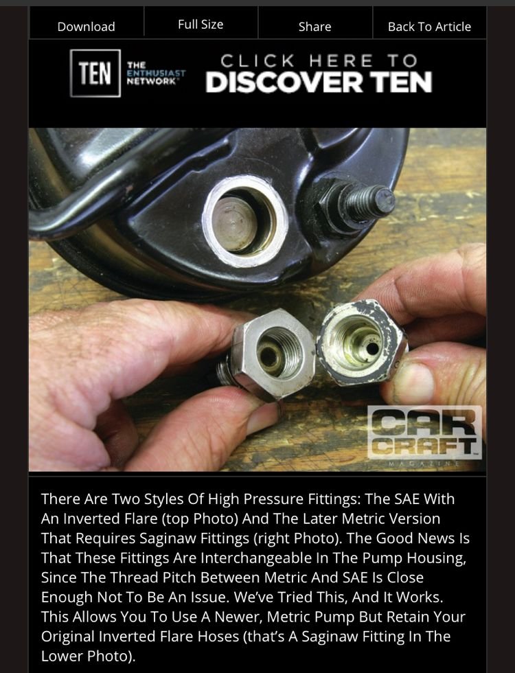 I can't figure out where my flare tool got to so I've gone the other direction and I'm making it pretty with Russell AN-6 fittings on order. The hose ends are cheap, shockingly cheap. They are only $6 on Summit or Amazon. A 90 degree turn for the back of the pump was $10. The adapter for the steering box to AN-6 was the expensive part. That was about $20, and won't get here for a few days.