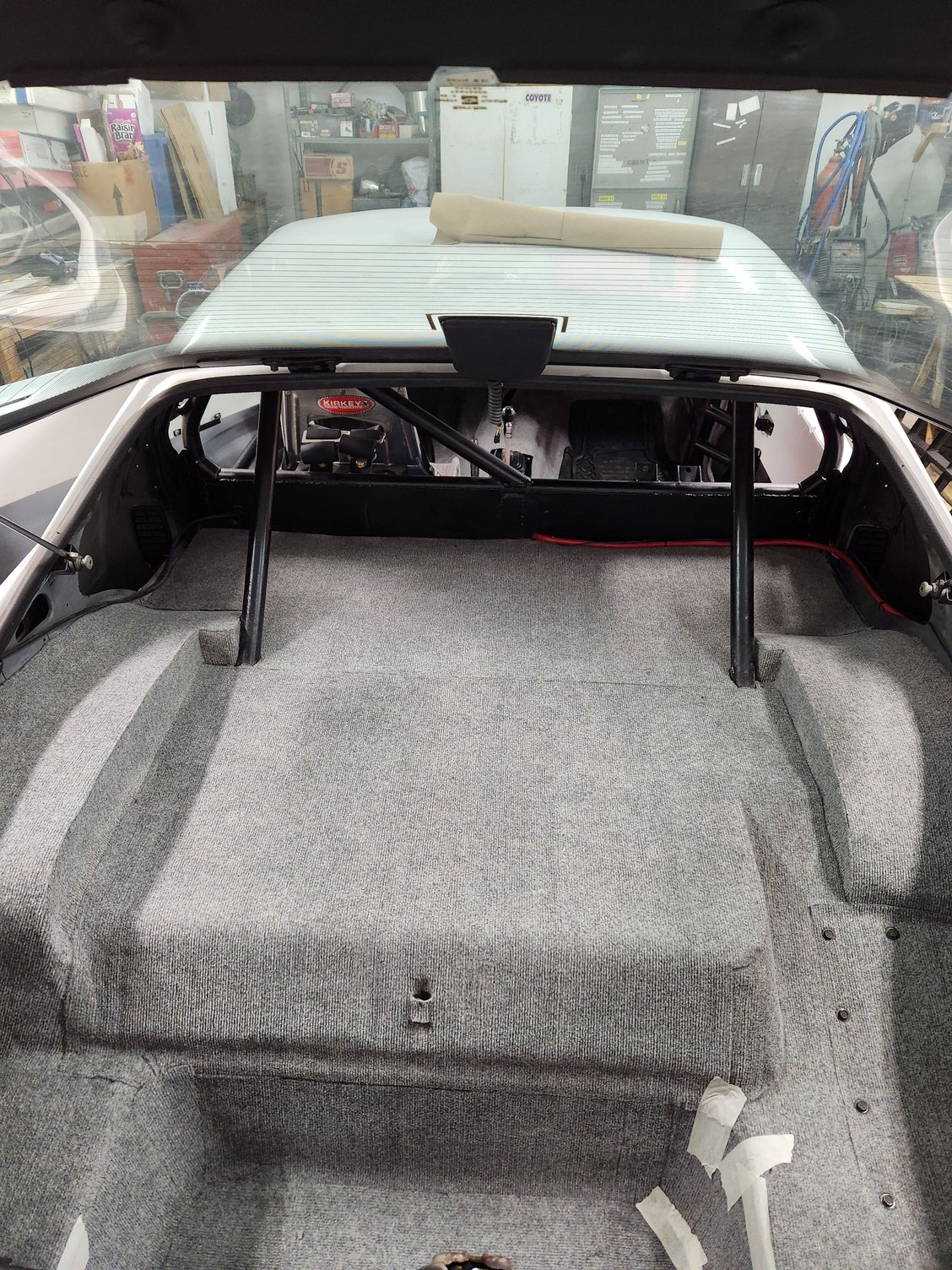 carpet as used on the floors. Since I have extra luan, I think I'll make a second panel to fit behind the main hoop and cover the roof area between the main hoop and rear hatch.