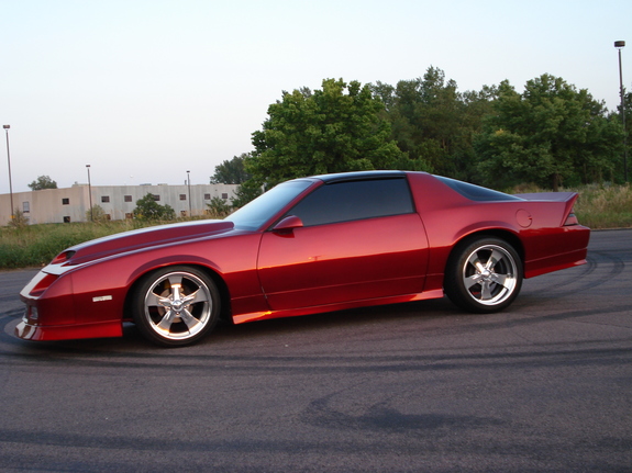 Its a fiberglass hood that i think came on the 82-84 Camaro RS. It might be aftermarket, but im not sure cuz it was on the car when i bought it. And its got an '82 front bumper cover. (the car is an 89 btw). So im thinkin its an 82 hood that the previous owner got from a junkyard or something, along with the bumper, and for some reason he decided to make it into a full pin on.