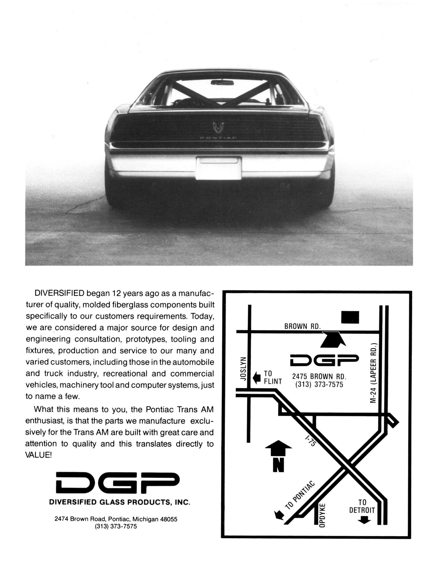 I get that this is an ancient thread, but I've found some interesting info on the DGP kit for folks skulking about here (like me). The brochure includes dimensions for anyone looking to take a swing at reproducing the pieces. It may be there was no spoiler on the car in the Pontiac Performance Plus article, instead a reflection of the sky in the paintwork that gave the impression of something on the trunk