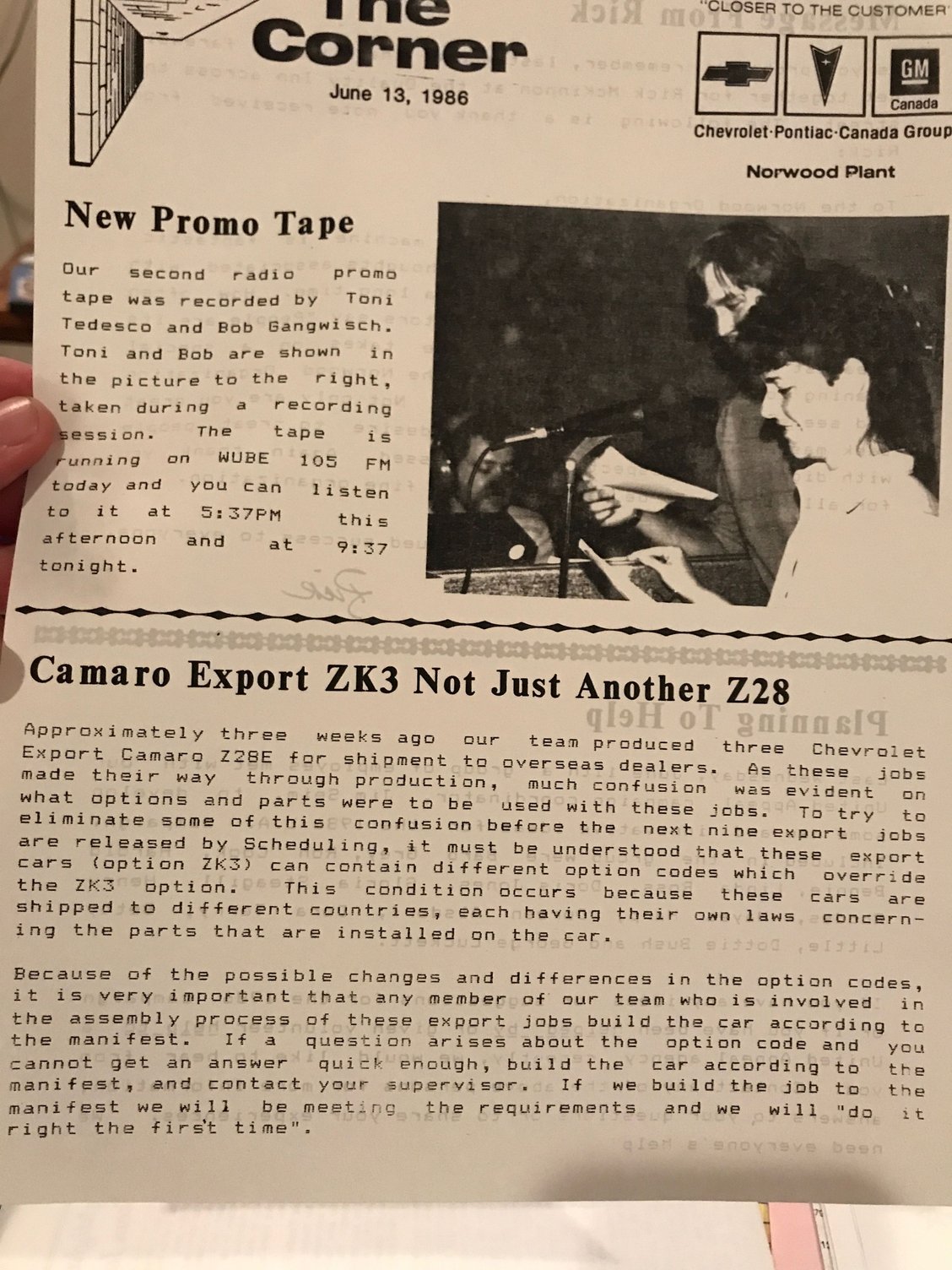 Heres an article from our Norwood Assembly paper back in the day.. kind of a funny read about worker not knowing what they were building that was different from the normal F cars.