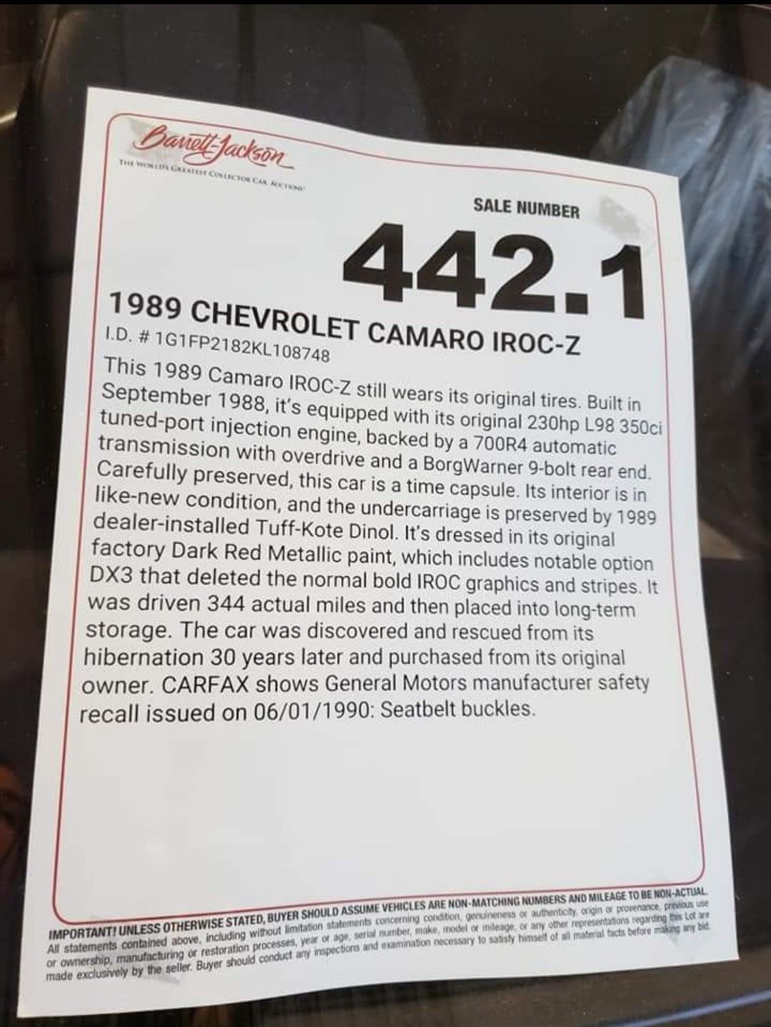 I was surprised it went for that much given a few of the closeup photos from auction attendees that surfaced on a facebook IROC page, but I'm glad to see all things thirdgen gaining in value. Well sold!