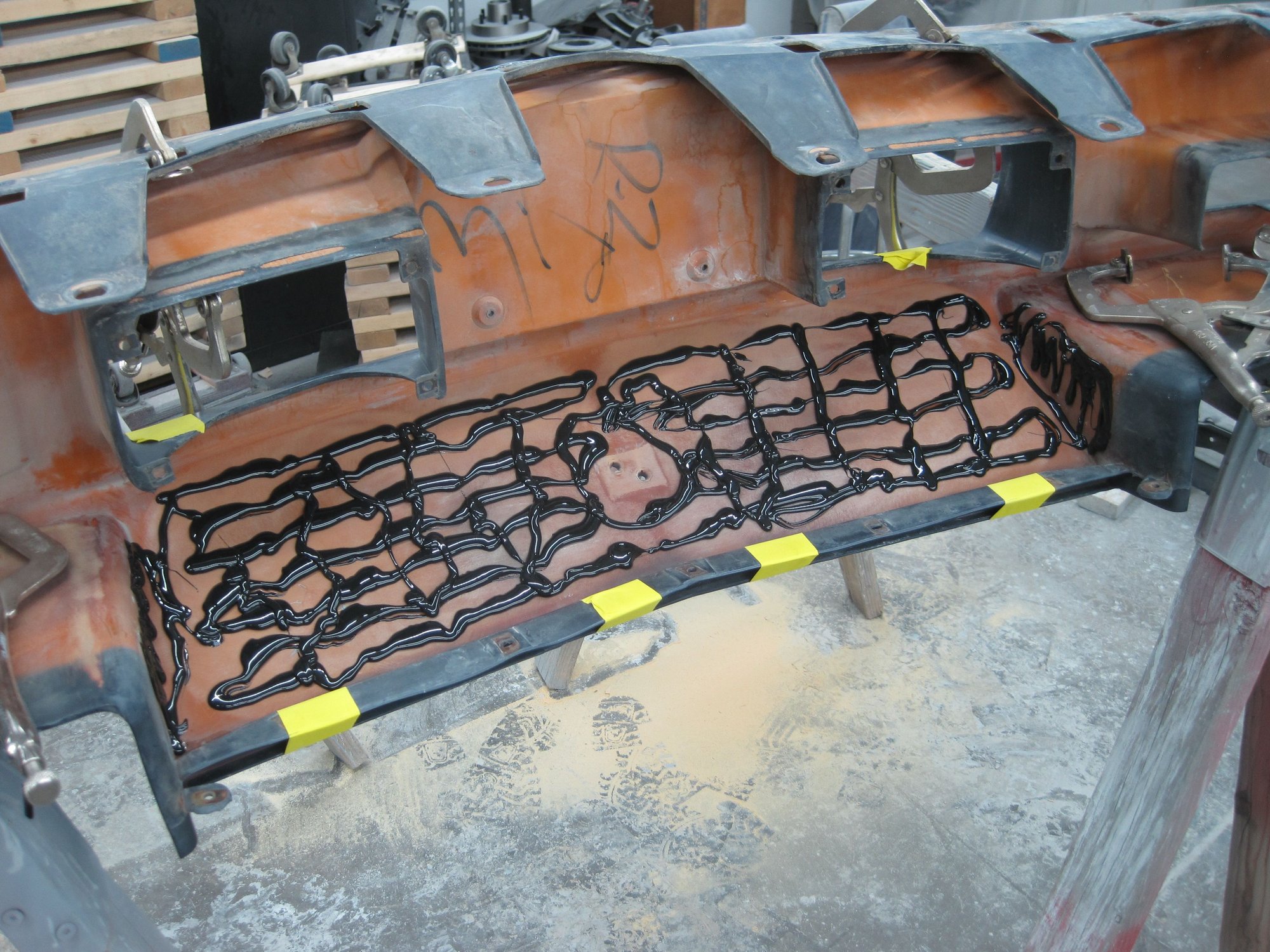 Next up is to seal all the seams and apply some Lizard Skin Sound Control inside the door skins and other strategic spots in the body. Lizard Skin is a pretty tough product. I am going to use it as an undercoating in the wheel wells and other areas that had it.