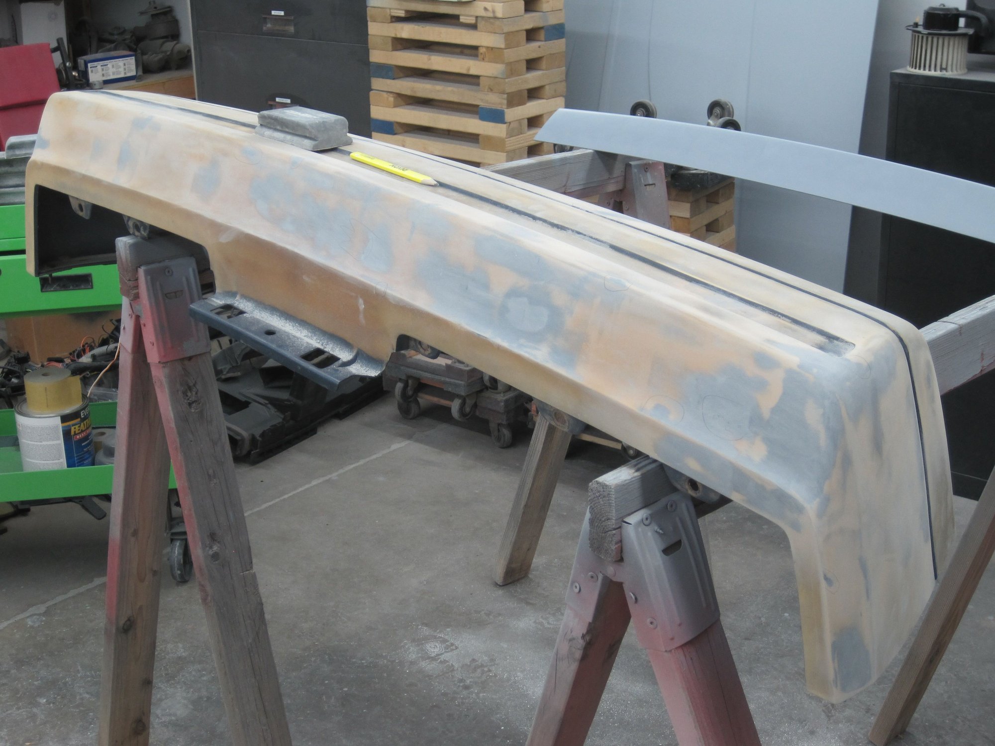 The rear bumper cover is now in work. I previously sanded all the deteriorated areas and now have filled them with Polyvance Flex Filler Epoxy. I expect to spend several hours on this as I have never bodyworked a urethane bumper. So far, it’s looking good.