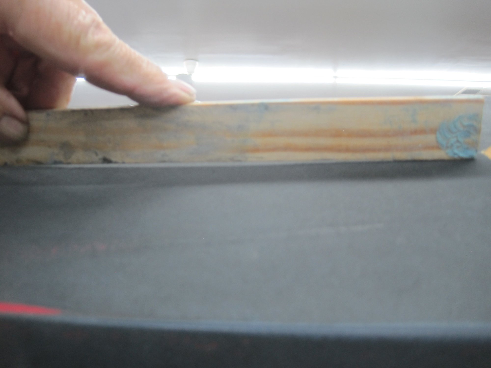 Success! The center backing plate is holding. There’s no flexing these areas now, it’s very solid. The real test will be how long this repair lasts. It’s hard to see in the photo how flat it is now. But, a straight edge confirms it’s pretty flat.
